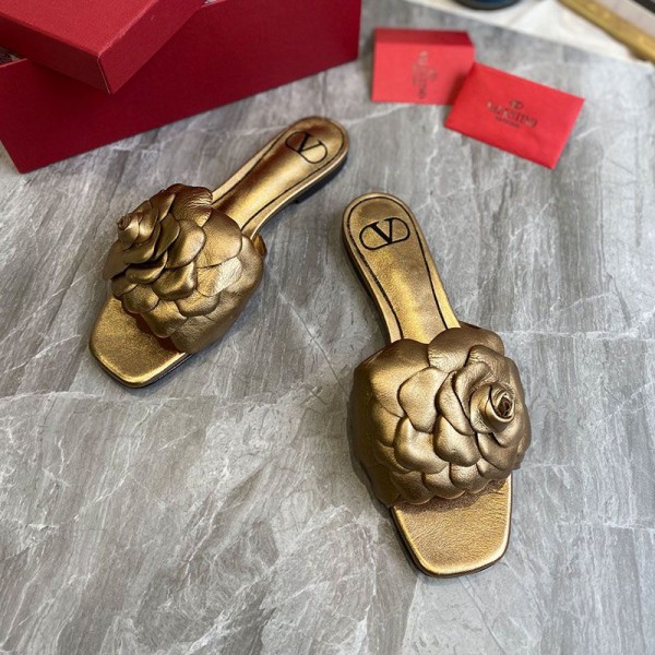 Valentino Garavani Atelier Shoes 03 Rose Edition Heeled Slides Women Kidskin Gold