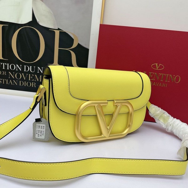 Valentino Garavani Large Supervee Shoulder Bag In Calfskin Lemon