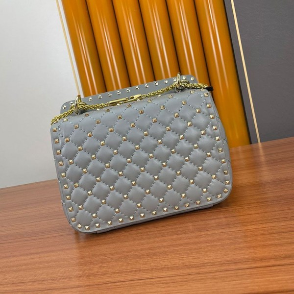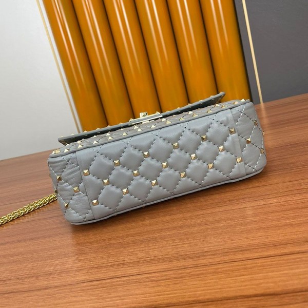 Valentino Garavani Medium Rockstud Spike Chain Bag In Lambskin Grey