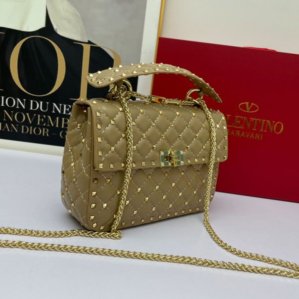Valentino Garavani Medium Rockstud Spike Chain Bag In Lambskin Military Green