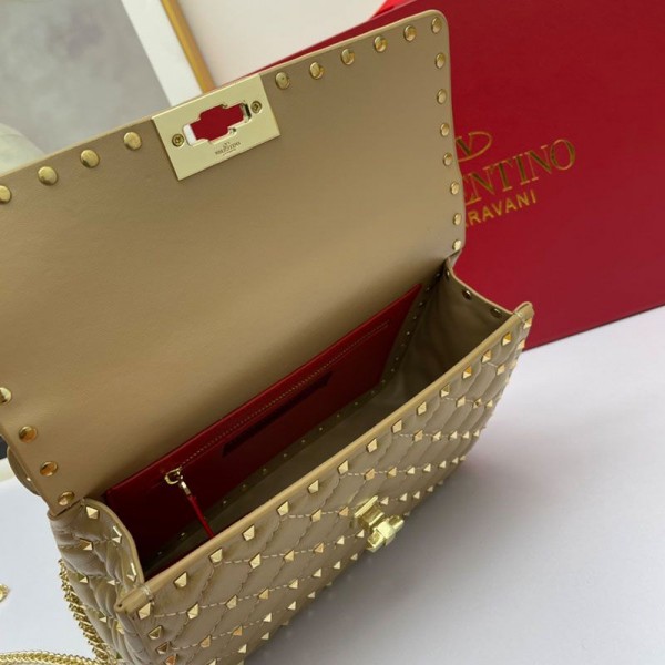 Valentino Garavani Large Rockstud Spike Chain Bag In Lambskin Red