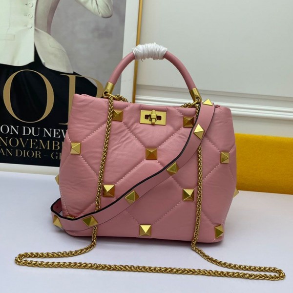 -Pink Roman Stud Handle Bag.