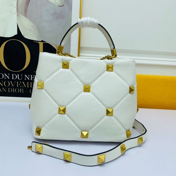 Valentino Garavani Meidum Roman Stud Handbag In Nappa Lambskin White