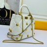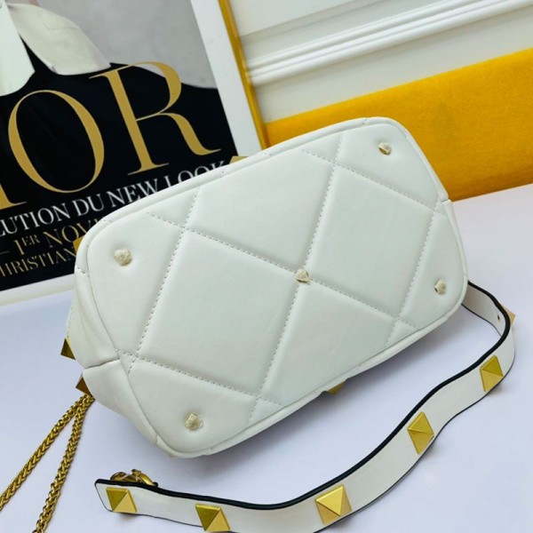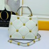 -White Roman Stud Handle Bag.