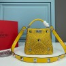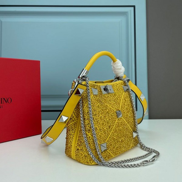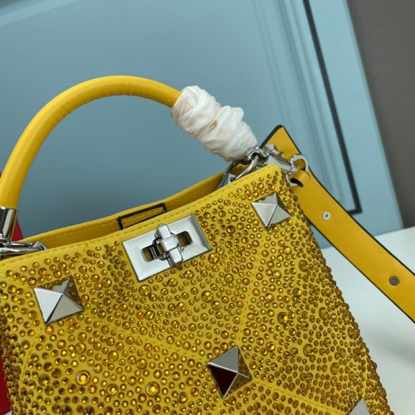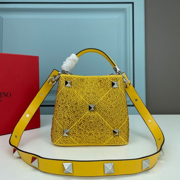 Valentino Garavani Mini Roman Stud Handbag with Sparkling Crystals In Nappa Lambskin Yellow