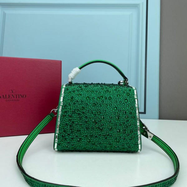 Valentino Garavani Mini Vsling Handbag with Jewel Embroidery In Calfskin Green