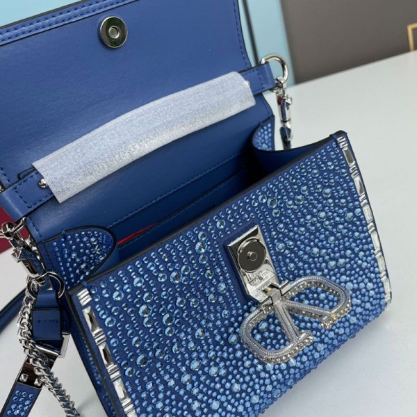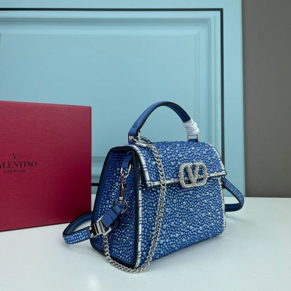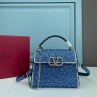 Valentino Garavani Mini Vsling Handbag with Jewel Embroidery In Calfskin Navy Blue
