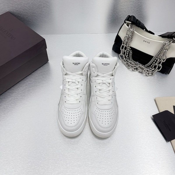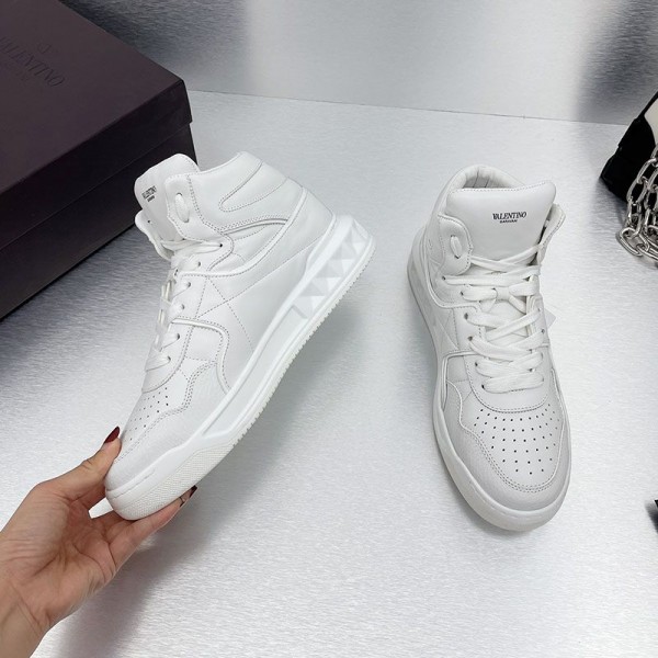Valentino Garavani One Stud Mid-Top Sneakers Unisex Calfskin White