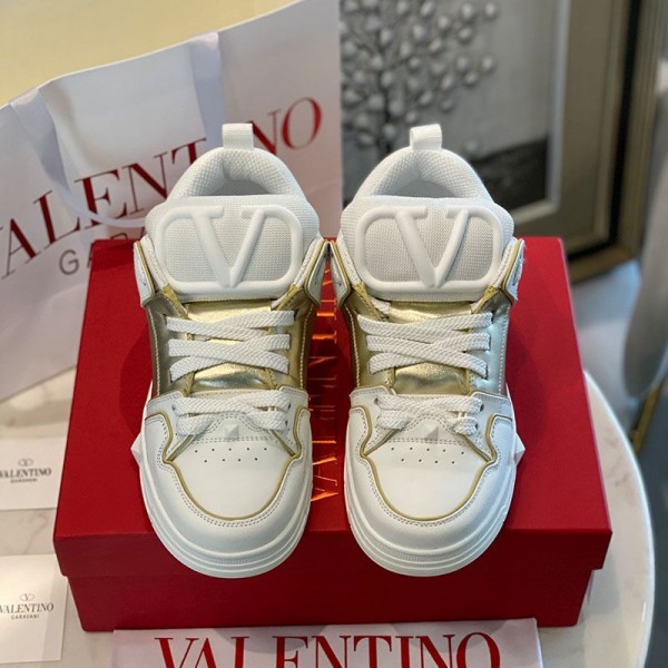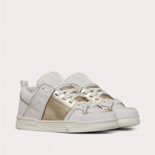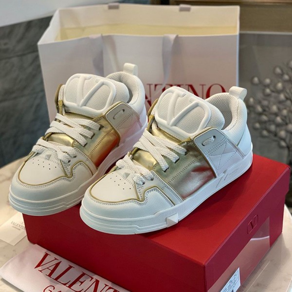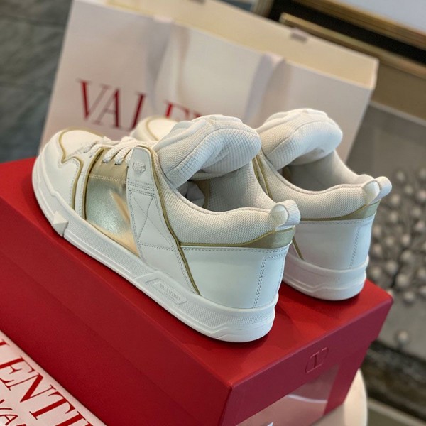 Valentino Garavani Open Skate Sneakers with VLogo Unisex Calfskin and Fabric White/Gold