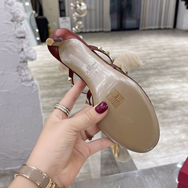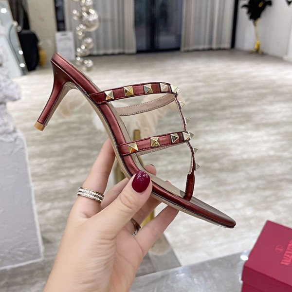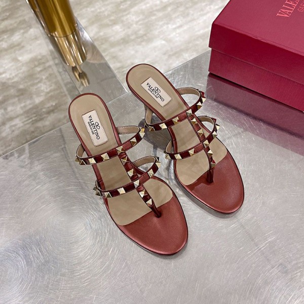 Valentino Garavani Rockstud Flip-Flop Heeled Slides Women Calfskin Burgundy