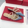 -Navy Blue Rockstud Mules.