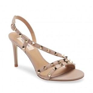 Valentino Garavani Rockstud Sandals with Asymmetric-Straps Women Calfskin Taupe