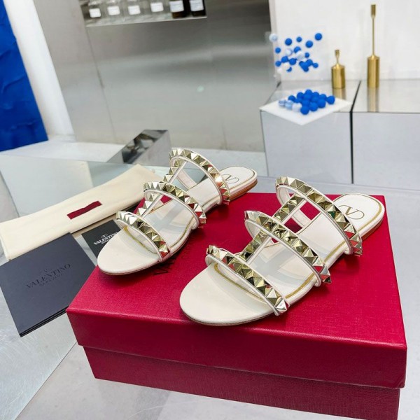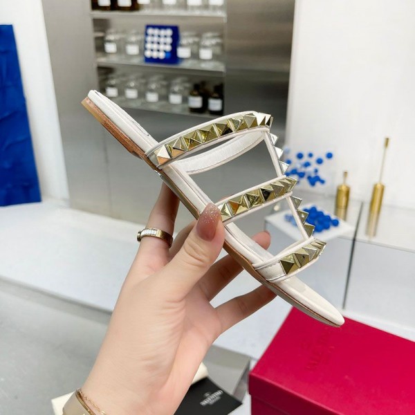 Valentino Garavani Rockstud Slides with No Limit Studs Women Calfskin White