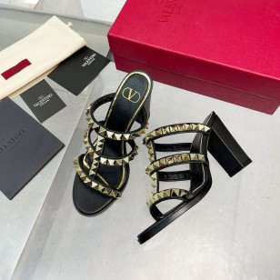 Valentino Garavani Rockstud Thick-Heeled Slides with No Limit Studs Women Calfskin Black