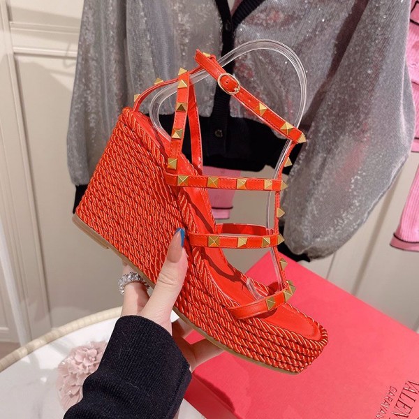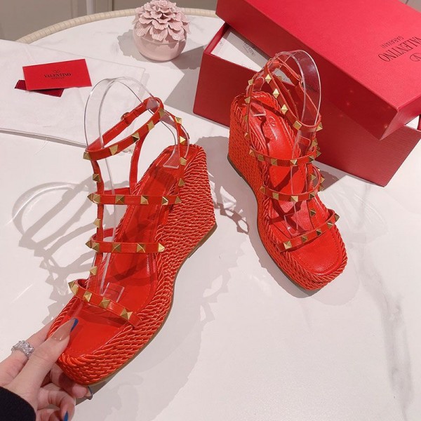 -Red Rockstud Wedge Sandals.