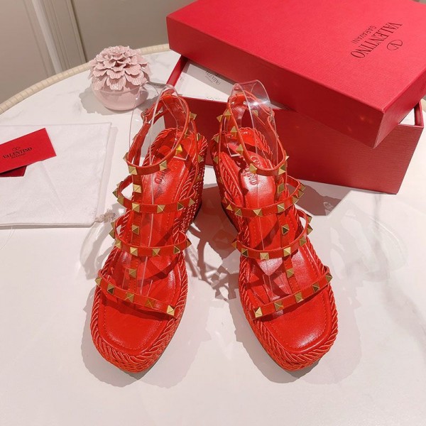 Valentino Garavani Rockstud Wedge Sandals with Ankle Strap Women Calfskin Red