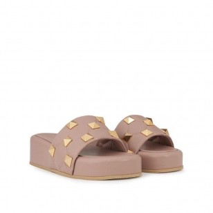 Valentino Garavani Roman Stud Flatform Slides Women Nappa Leather Cherry