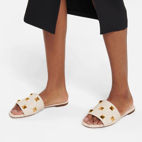 Valentino Garavani Roman Stud Slides Women Nappa Leather White