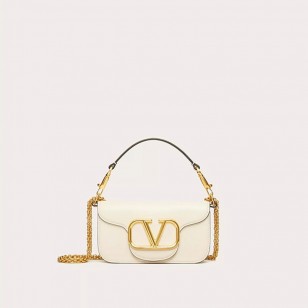 Valentino Garavani Small Loco Shoulder Bag In Calfskin White