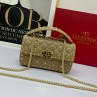 Valentino Garavani Mini Roman Stud Handbag with Sparkling Crystals In Nappa Lambskin Rose