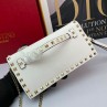 -White Rockstud Wristlet Clutch.