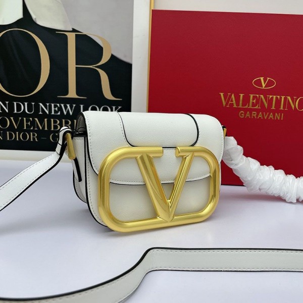 Valentino Garavani Small Supervee Shoulder Bag In Calfskin White
