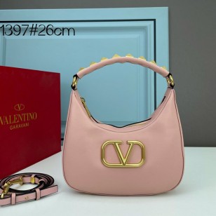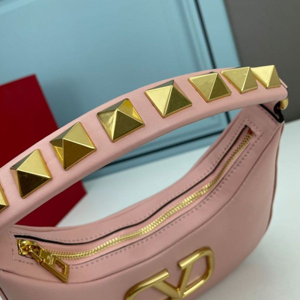 Valentino Garavani Stud Sign Hobo Bag In Calfskin Cherry