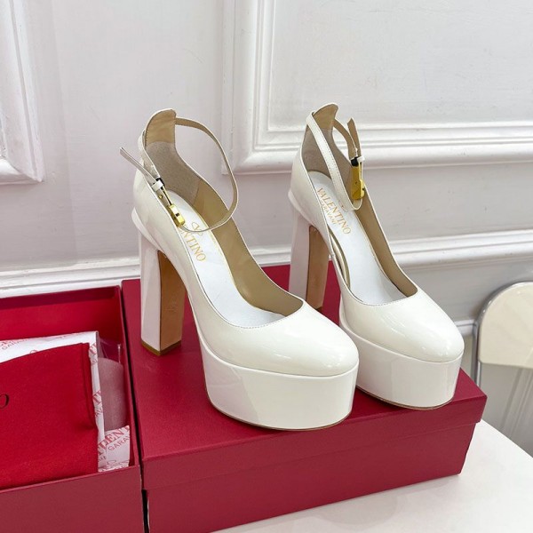Buy Valentino Garavani Tan-Go Platform Pumps with Ankle Strap Women Patent Leather White from Cheap Valentino Outlet Sale Store with 70% Price Discount and Free Worldwide Shipping.