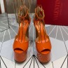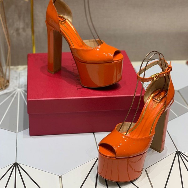 Valentino Garavani Tan-Go Platform Sandals with Ankle Strap Women Patent Leather Orange
