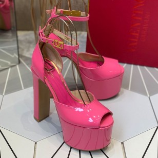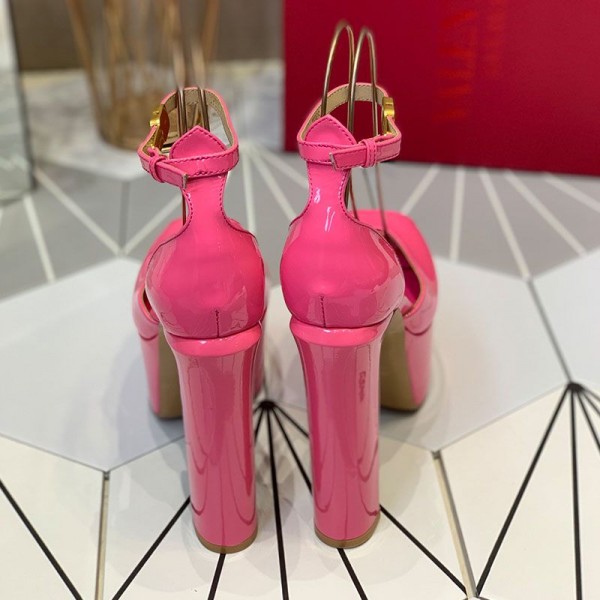 Valentino Garavani Tan-Go Platform Sandals with Ankle Strap Women Patent Leather Pink