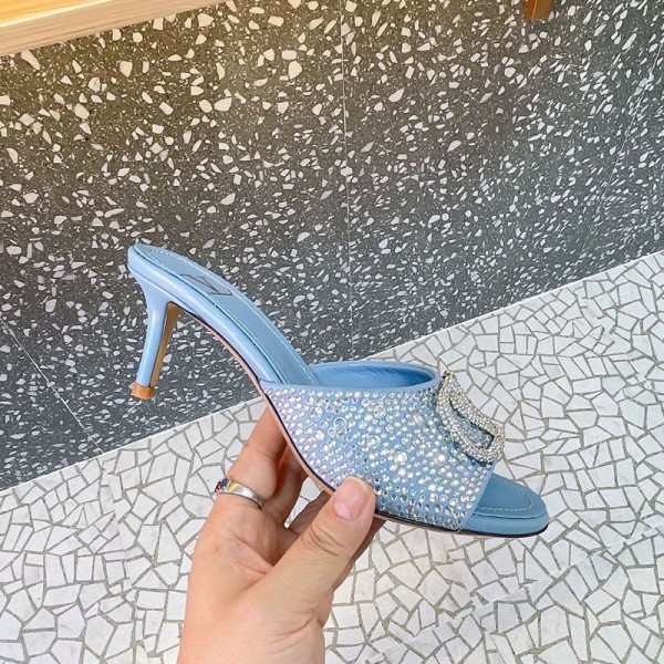 Valentino Garavani VLogo Signature Heeled Mules with Crystals Women Sheepskin Sky Blue