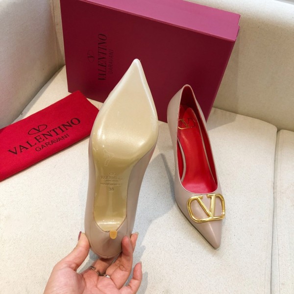 Valentino Garavani Vlogo Signature Pumps Lambskin Nude Gold Hardware