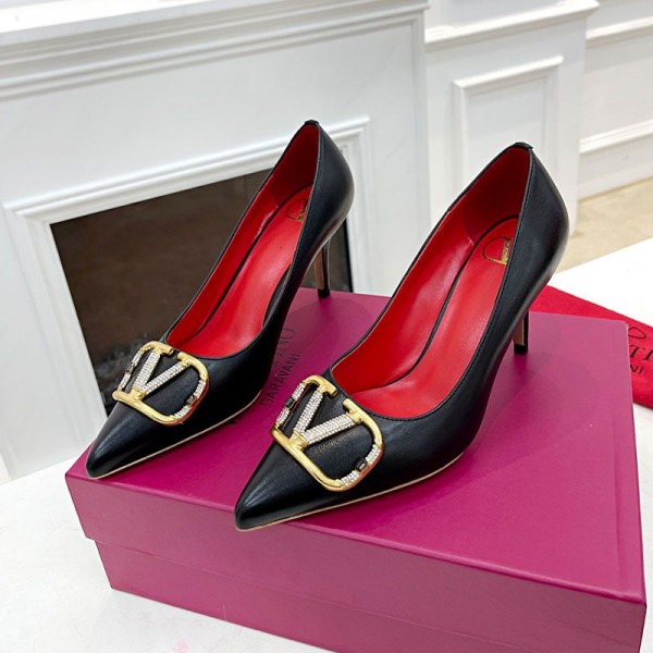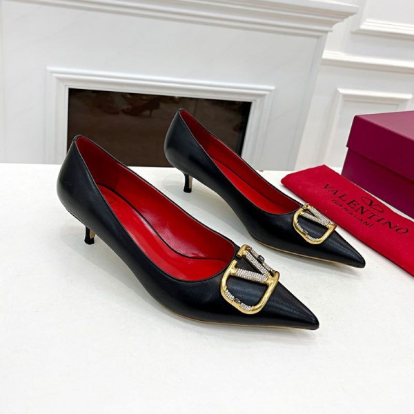 Valentino Garavani VLogo Signature Pumps with Crystals Women Calfskin Black/Red