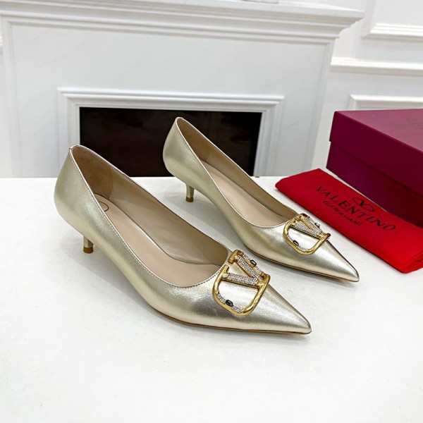Valentino Garavani VLogo Signature Pumps with Crystals Women Calfskin Gold