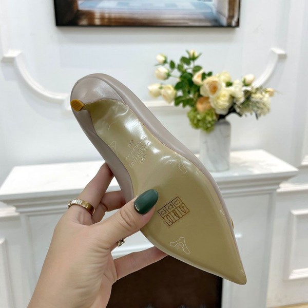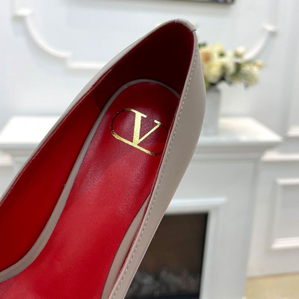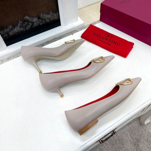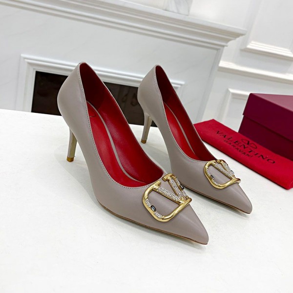 Valentino Garavani VLogo Signature Pumps with Crystals Women Calfskin Taupe/Red
