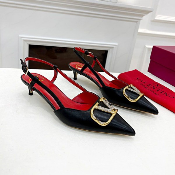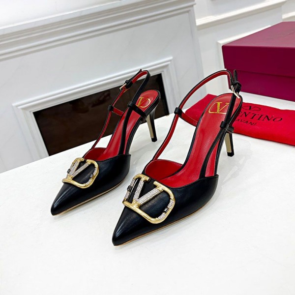 Valentino Garavani VLogo Signature Slingback Pumps with Crystals Women Calfskin Black/Red