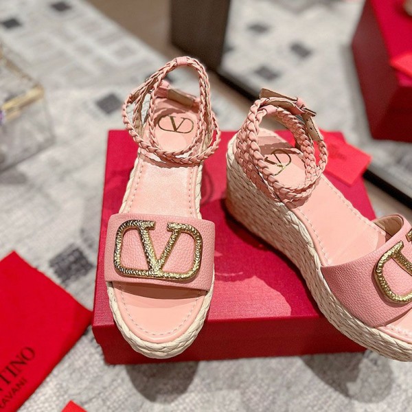Valentino Garavani VLogo Signature Wedge Sandals Women Grained Calfskin Cherry