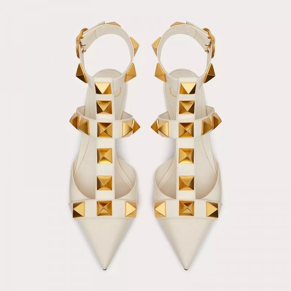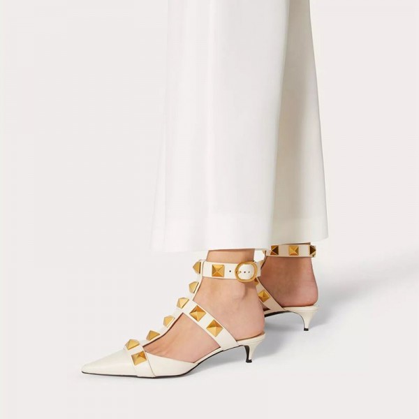Valentino Gravani Roman Stud Pumps with Straps Women Calfskin White